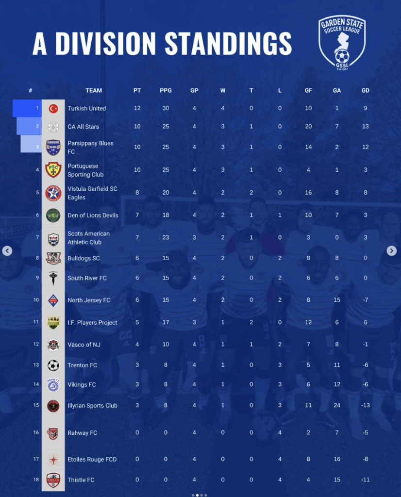 Türkocağı NJ çatısı altında mücadele eden Turkish United, üstün performansıyla Garden State Soccer League A Division’da liderlik koltuğuna oturdu! 🏆