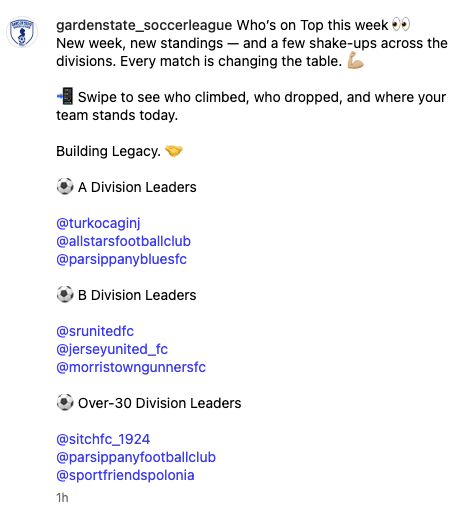 Garden State Soccer League, bu başarıyı kendi sosyal medya hesaplarında da paylaştı. 🙌🏼
