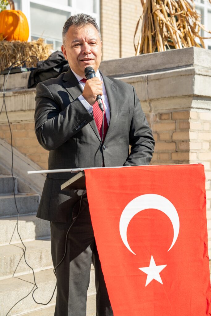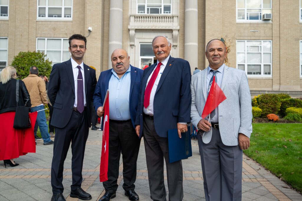 Etkinlik, Lyndhurst Belediye Binası önünde yapılan bayrak töreniyle başladı. Katılımcılar Türk bayrakları eşliğinde gururla saf tuttu. Saygı duruşu ve İstiklal Marşı’nın ardından Cumhuriyet’in anlam ve değerine vurgu yapan konuşmalar yapıldı.